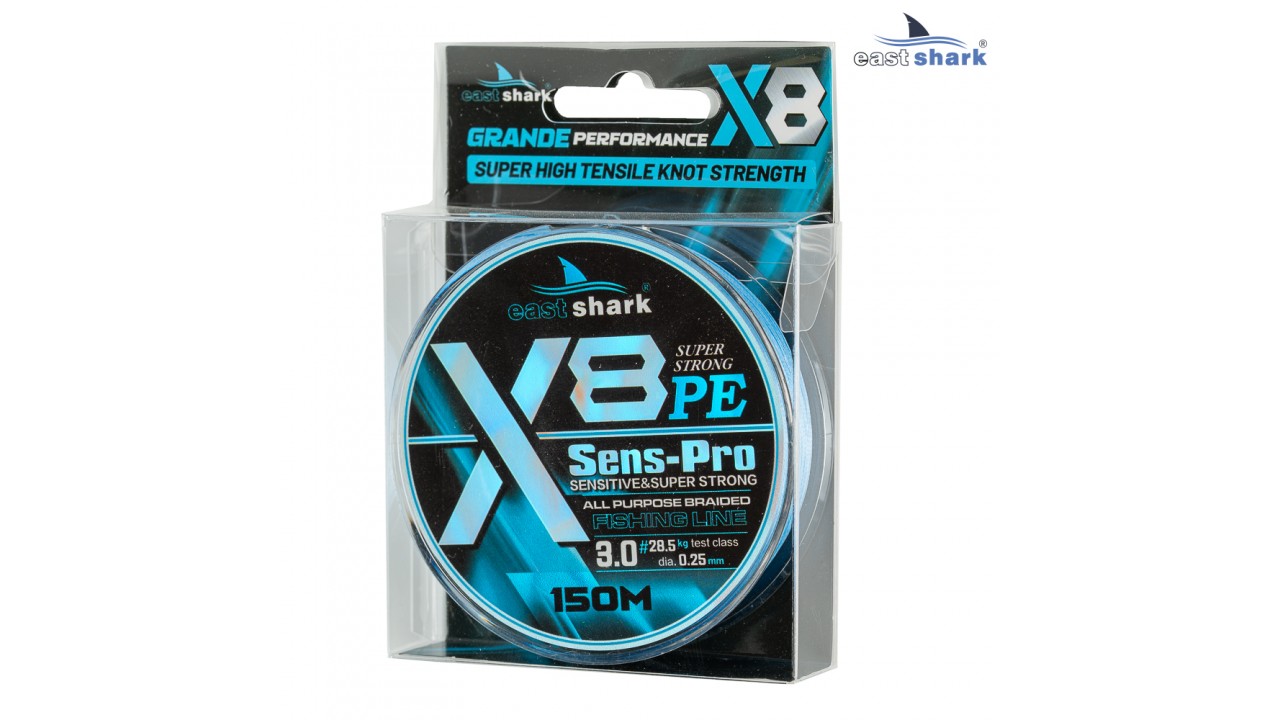 Плетёный шнур Eastshark Sens-Pro X8 — это высококачественный восьмижильный шнур, разработанный специально для профессиональных рыболовов. Его диаметр составляет от 0,08 мм до 0,30 мм , что соответствует японскому размеру #0,2-#4.0, а длина намотки — 150 метров. Шнур выполнен в голубом цвете и обеспечивает отличную заметность для визуального контроля во время ловли.