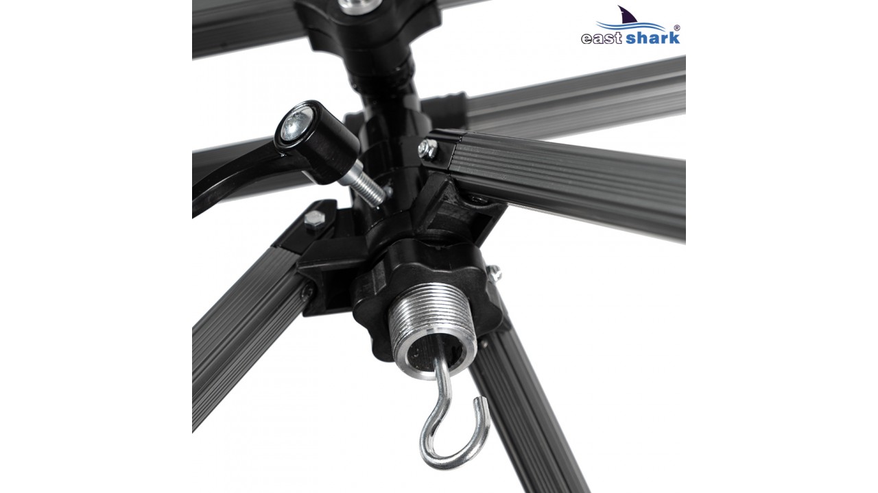 Rod-pod SDH-122-5 EastShark на 5 удилищ имеет конструкцию треноги, что позволяет наклонять или поднимать концы удилищ.