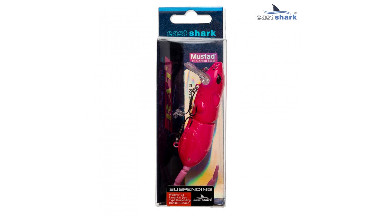 Модель Mouse имеет вес 17 грамм и размер 8.5 см, является поверхностной приманкой, при равномерной проводке имитирует плывущего по поверхности грызуна.