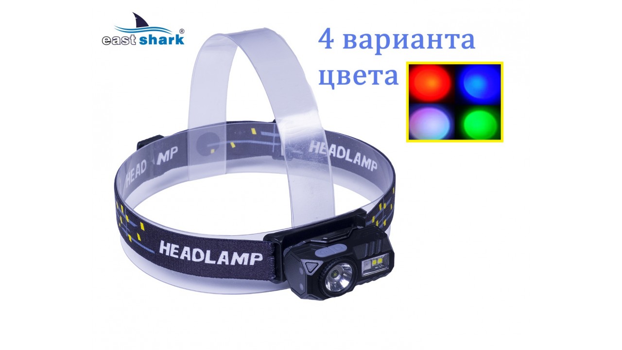Легкий и удобный налобный фонарь EastShark с влагозащитным корпусом.
