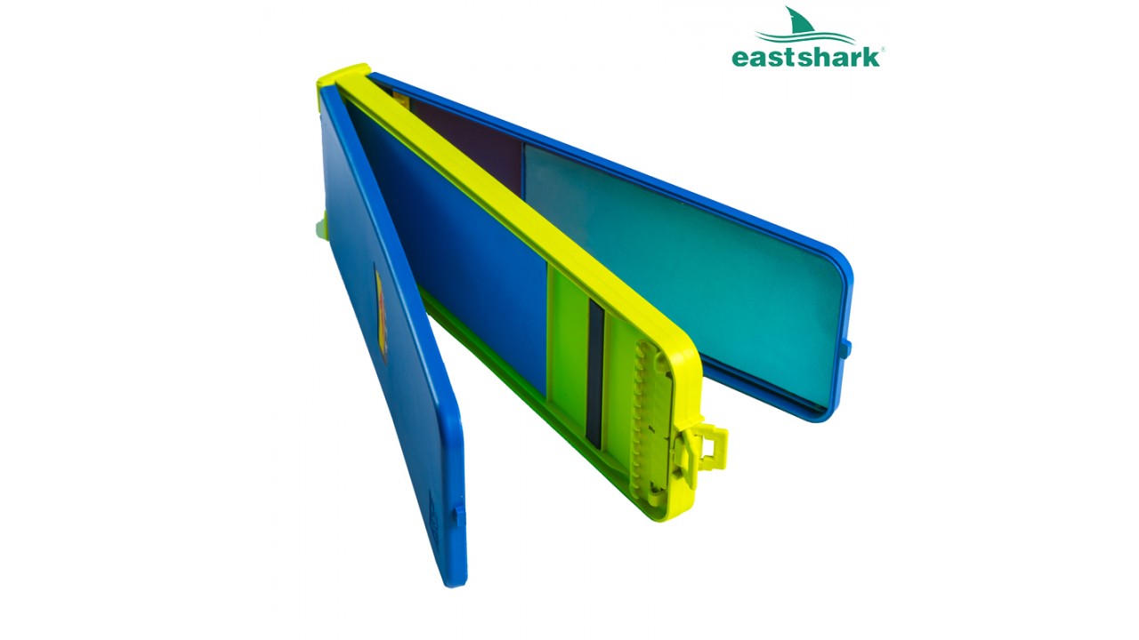 Пластиковая поводочница EastShark для хранения готовых поводков, двухсторонняя на 4 отдела с магнитной вставкой.