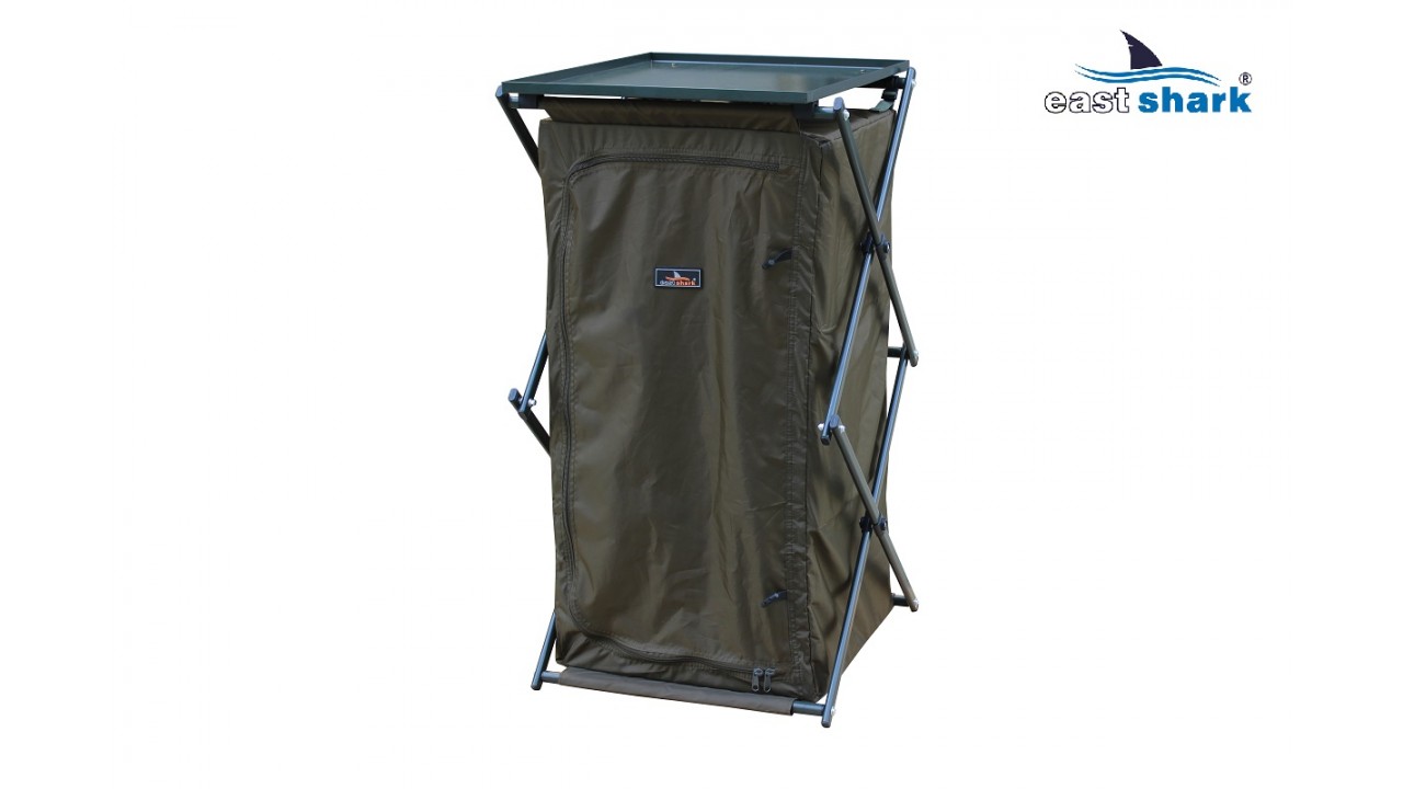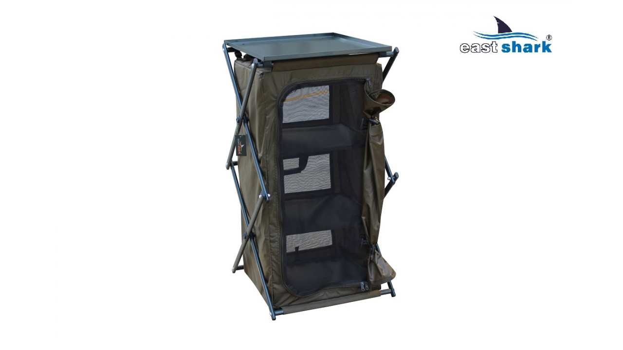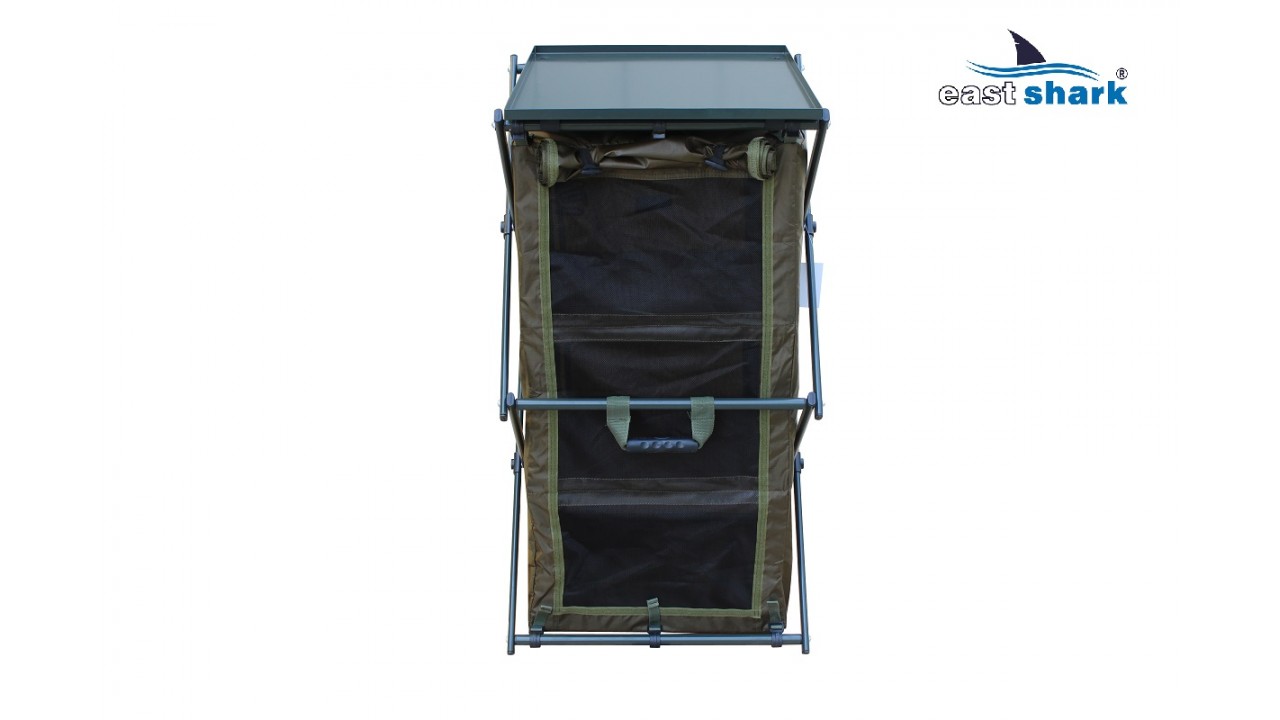 В первую очередь стеллаж предназначен для хранения столовых принадлежностей и приготовления пищи на природе, при этом он отлично подходит для хранения вещей и аксессуаров для рыбалки во время длительных рыболовных сессий, позволяет сэкономить много места в палатке!