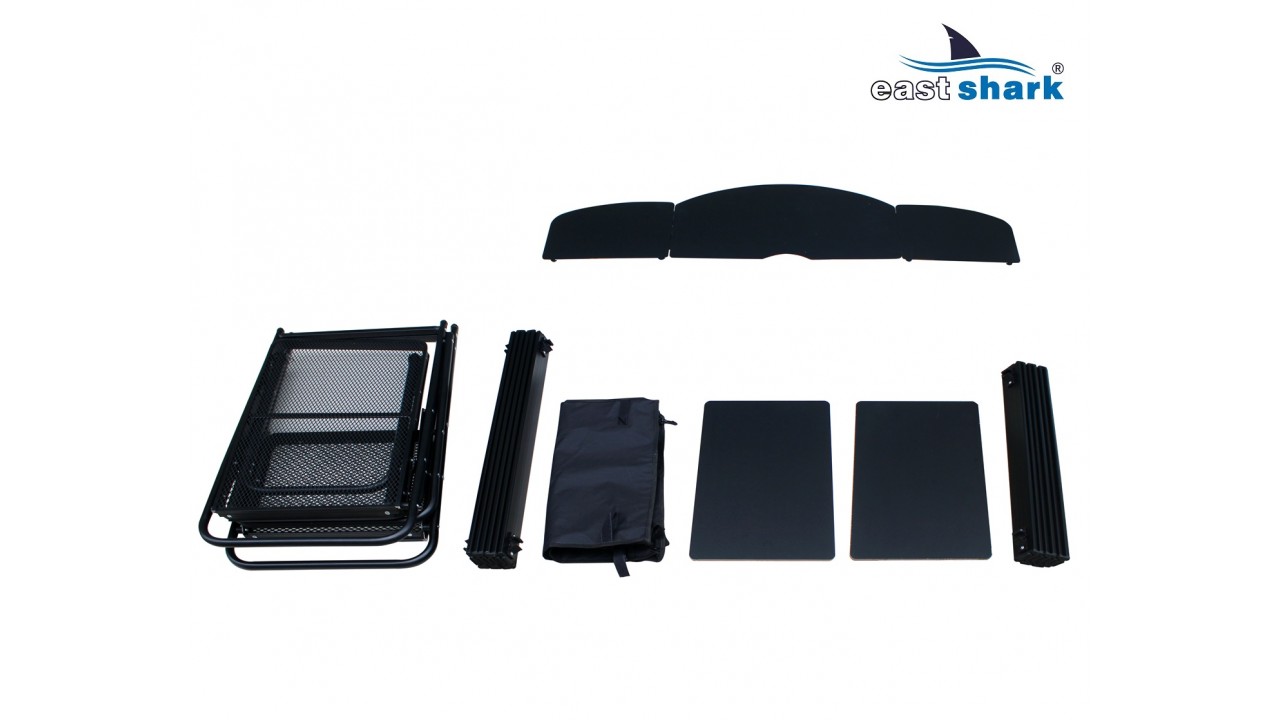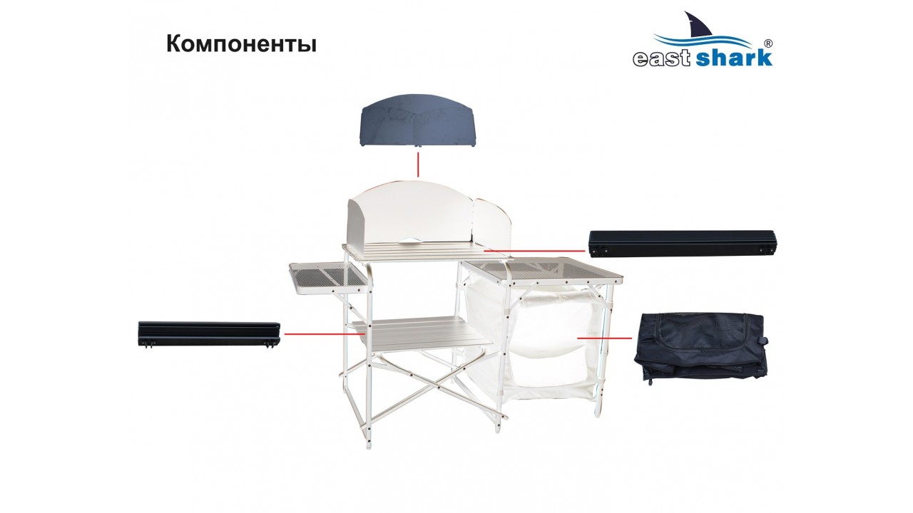 Станция предназначена для хранения столовых принадлежностей и приготовления пищи на природе, при этом он отлично подходит для хранения рыболовных принадлежностей и аксессуаров во время длительных рыболовных сессий, позволяет сэкономить много места в палатке!