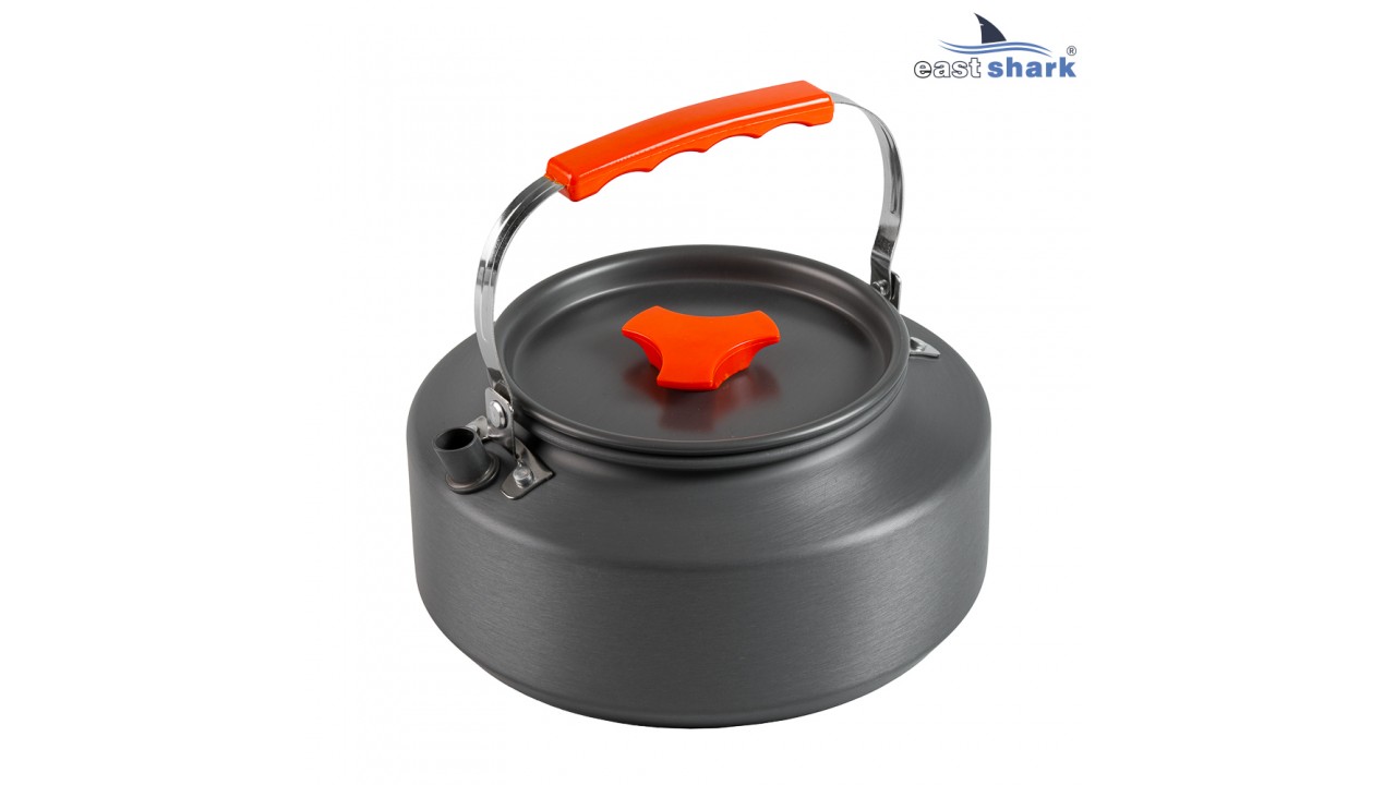 Чайник 1,6L с крышкой и ручкой. Ручка и крышка имеют пластиковые вставки, не позволяющие обжечься.