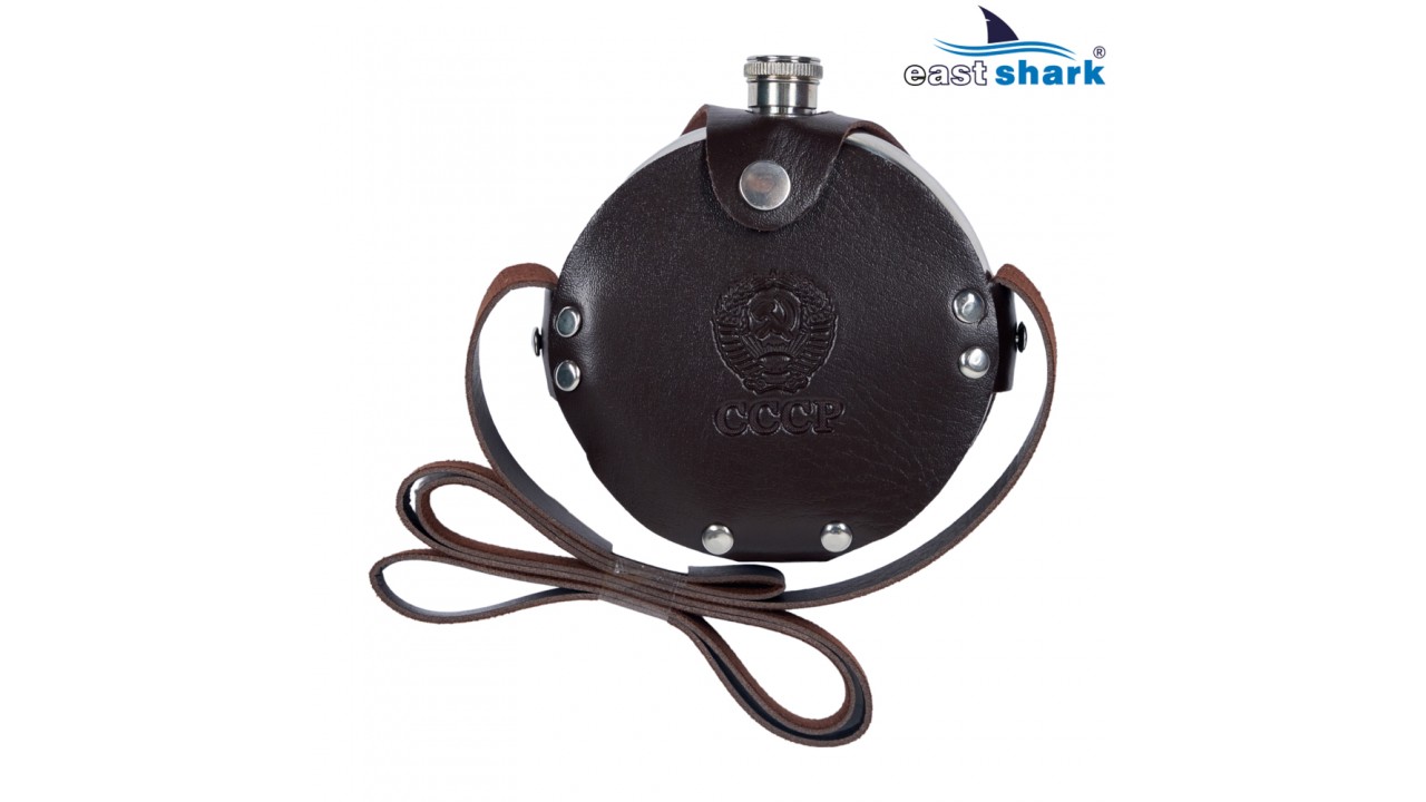 Фляга из нержавеющей стали объёмом 8OZ. в чехле из кожзам.