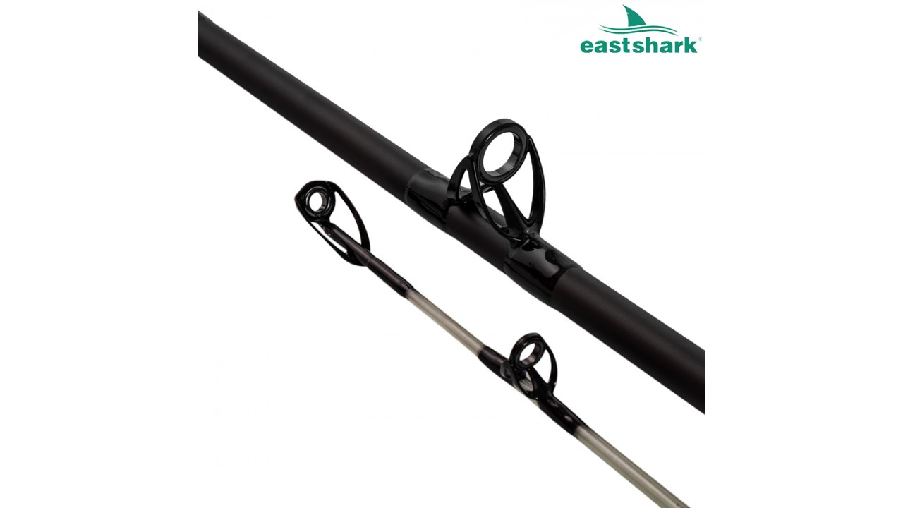 Мощный бланк изготовлен на 98% из карбона, комлевая часть в основании усиленна композитными материалами, установлены частые надежные кольца (усиленные на двойных ножках) для лучшего распределения нагрузки по бланку, удобная рукоять из EVA, надежный катушкодержатель позволяет установить безынерционную и мультипликаторную катушку.